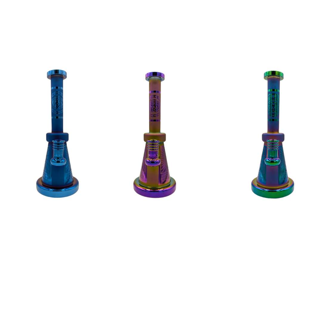 Este bong destaca por su combinación de estética y funcionalidad. Su acabado tornasol metálico lo convierte en una pieza visualmente impactante, mientras que el vidrio de alta calidad garantiza una excelente durabilidad.