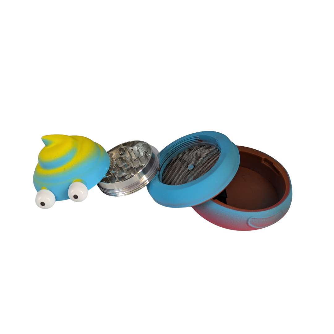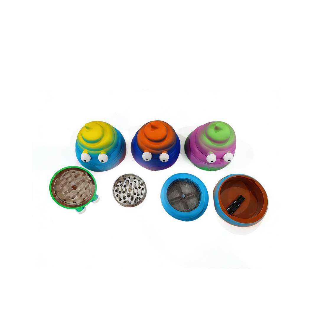 El grinder popó camuflado 45 mm es un accesorio ideal para quienes buscan una combinación entre diseño original, tamaño práctico y buen rendimiento al momento de triturar. Su estructura de 4 partes permite una experiencia más completa, facilitando la molienda y separación del material, mientras su estilo llamativo tipo popó camuflado lo convierte en un producto muy atractivo para vitrinas, tiendas y ventas por impulso.