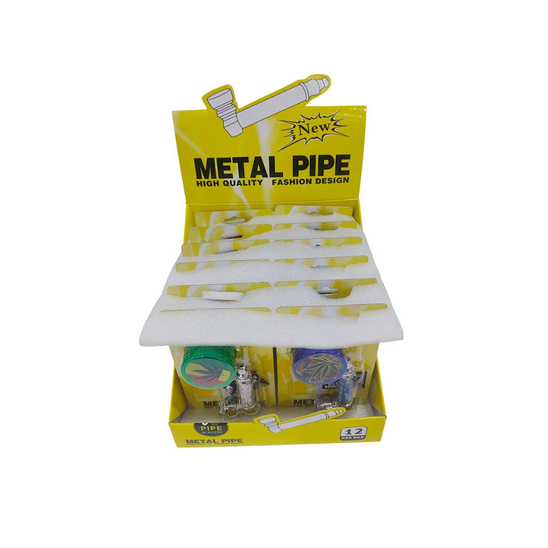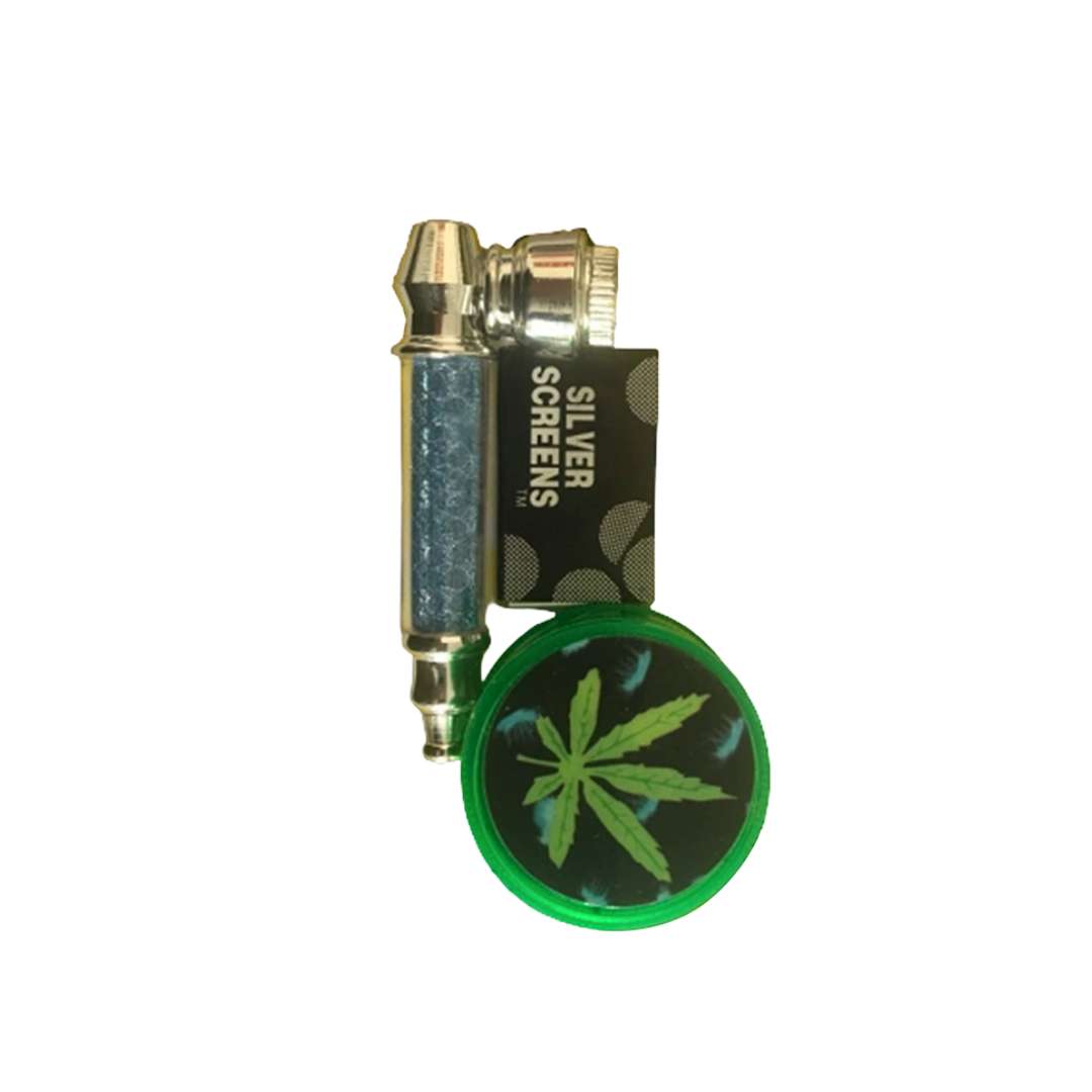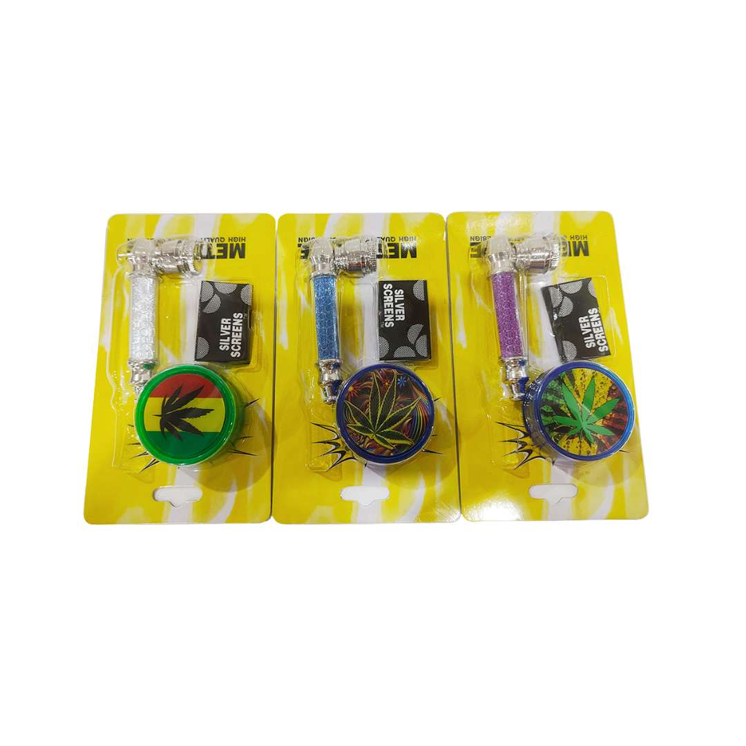 El kit pipa metálica con grinder acrílico es un accesorio práctico y funcional diseñado para quienes buscan una solución compacta para preparar y disfrutar su material. Este kit incluye una pipa metálica de 8 cm, un grinder acrílico de 40 mm de 2 partes y mallas metálicas de repuesto, ofreciendo un set completo listo para usar.
