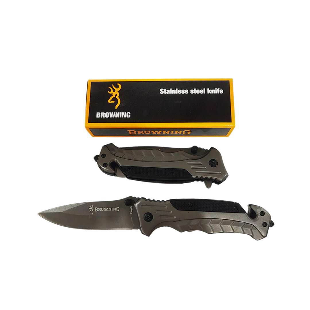 La navaja plegable Browning es una herramienta versátil diseñada para quienes buscan resistencia, funcionalidad y portabilidad. Su hoja de acero de alta calidad ofrece cortes precisos, mientras que su mango ergonómico proporciona mayor control y comodidad durante el uso.