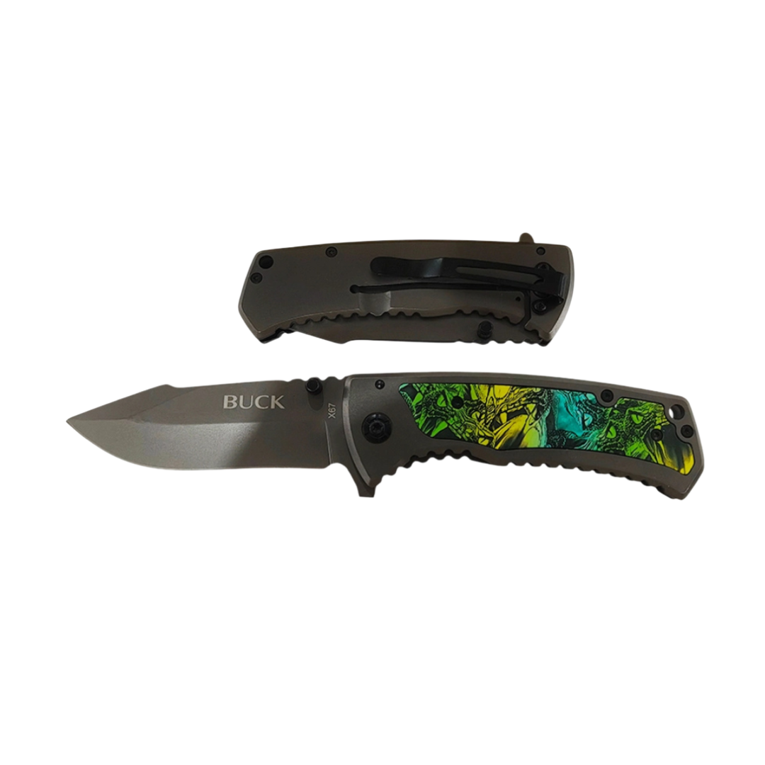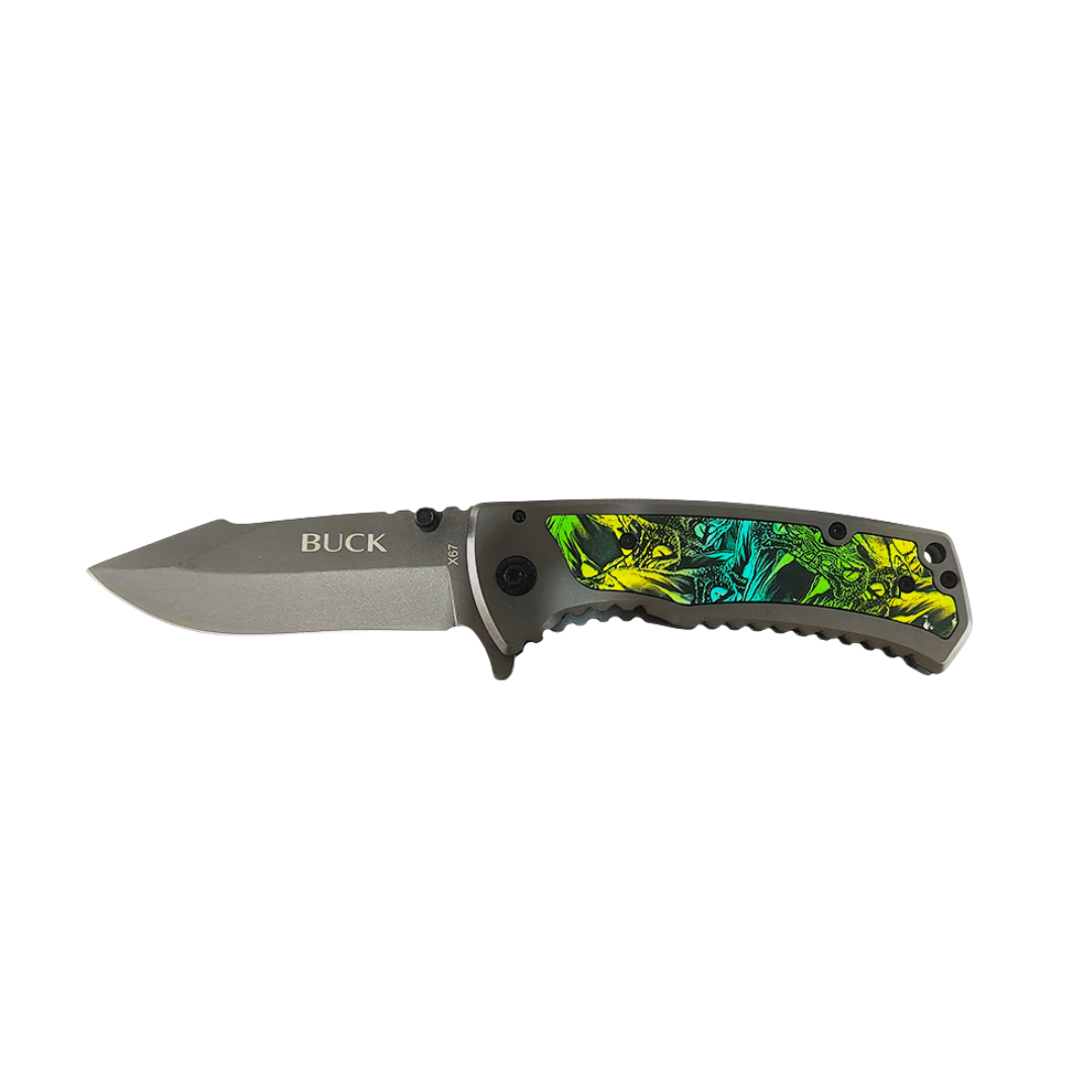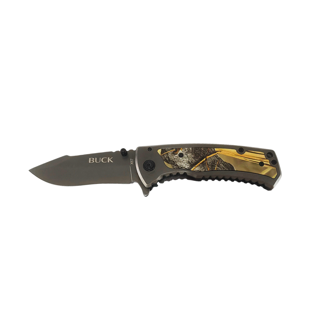 La navaja plegable Buck combina resistencia, diseño táctico y portabilidad. Cuenta con hoja de 9 cm y mango ergonómico de 11.5 cm que proporciona un agarre firme y seguro. Disponible en 3 colores. Encuéntrala en tienda o contáctanos en contacto.