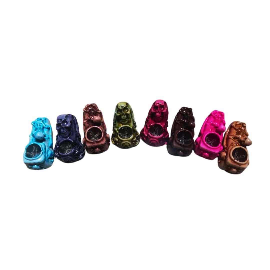 La pipa de resina de 5 cm es perfecta para quienes buscan un accesorio pequeño, durable y fácil de transportar. Su diseño decorativo y compacto la hace ideal para uso diario, además de contar con una cazoleta metálica que soporta altas temperaturas y ofrece una experiencia limpia y práctica.
