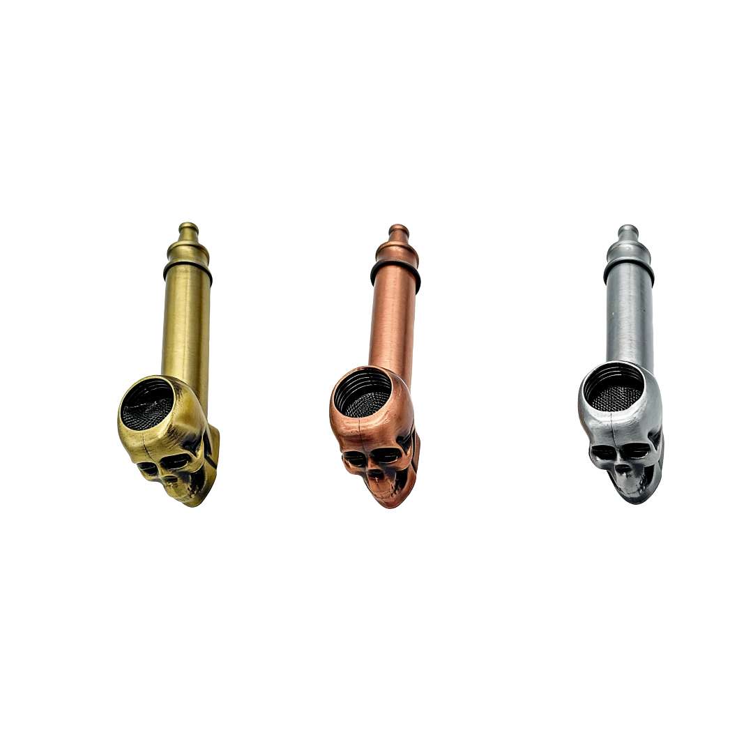 La pipa metálica calavera es una opción perfecta para quienes buscan una pipa funcional con un diseño único. Su estructura incorpora una calavera detallada en la parte frontal, lo que le da un estilo llamativo y diferente.