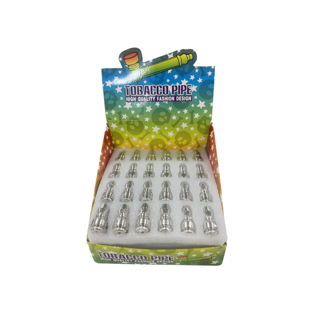 Descubre nuestra pipa metálica con diseños de 12.4 cm, una pieza llamativa y práctica para los amantes del buen fumar.