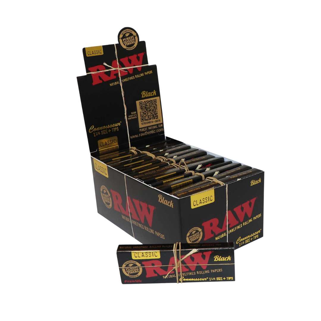 El RAW Black Connoisseur 1 1/4 con tips Ecuador es la combinación perfecta entre calidad premium, comodidad y rendimiento. Este formato incluye 50 hojas de papel RAW Black + 50 tips (boquillas), ofreciendo una solución completa en un solo empaque.