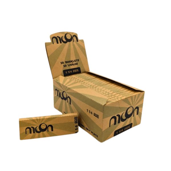 Los Moon Unbleached 1 ¼ Size son la mejor opción para quienes buscan un papel natural y ecológico. Fabricados con pasta de madera sin blanquear y goma arábiga natural, estos papeles garantizan una combustión lenta y una experiencia de fumado más limpia, respetando el sabor real de tu mezcla.